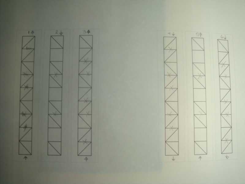 I numbered each column, alternating from top down and from bottom up on each one. This will ensure that the seams will “nest” against each other.