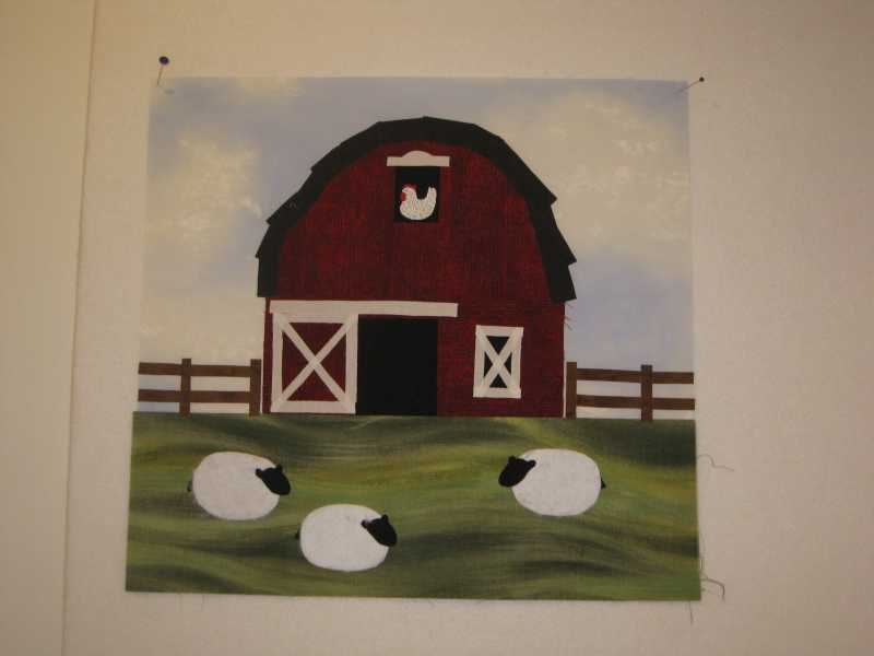 Love your barn block and especially like the sheep frolicking in front. Great fabric for the green grass area.