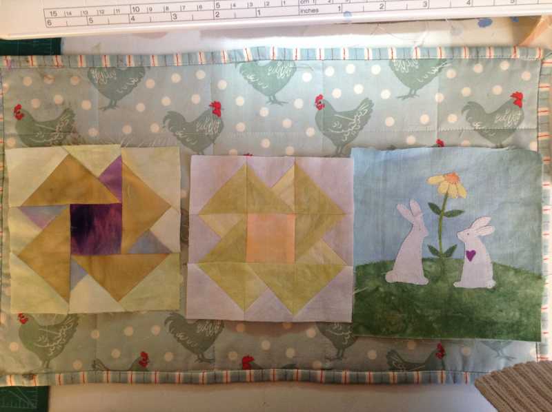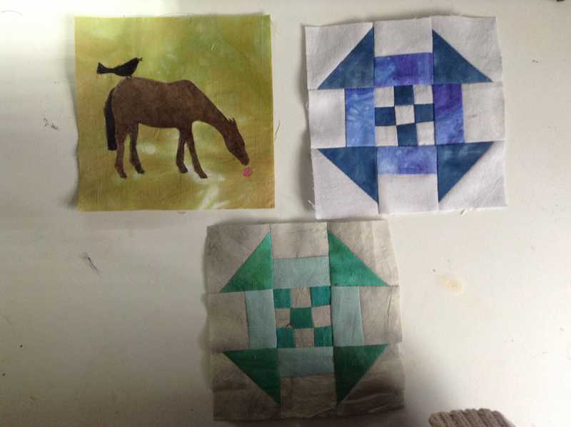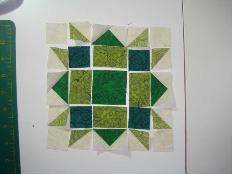 4 squares 2-1/4" each (color and background) - this is oversized, for the HST.