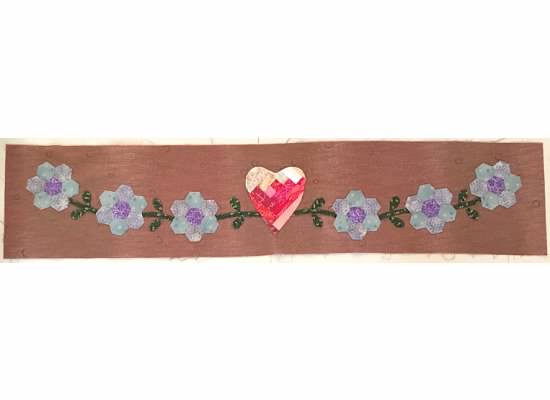 Finished by portion Friday night ahead of schedule. Love it when that happens. My hexi's are a little bigger than 1/2 sizes so my leaves are also. I got the leaf template from a Debbie Mumm book. My heart is a log cabin instead of the crazy patch. Not a fan of crazy quilting. Happy with the results.