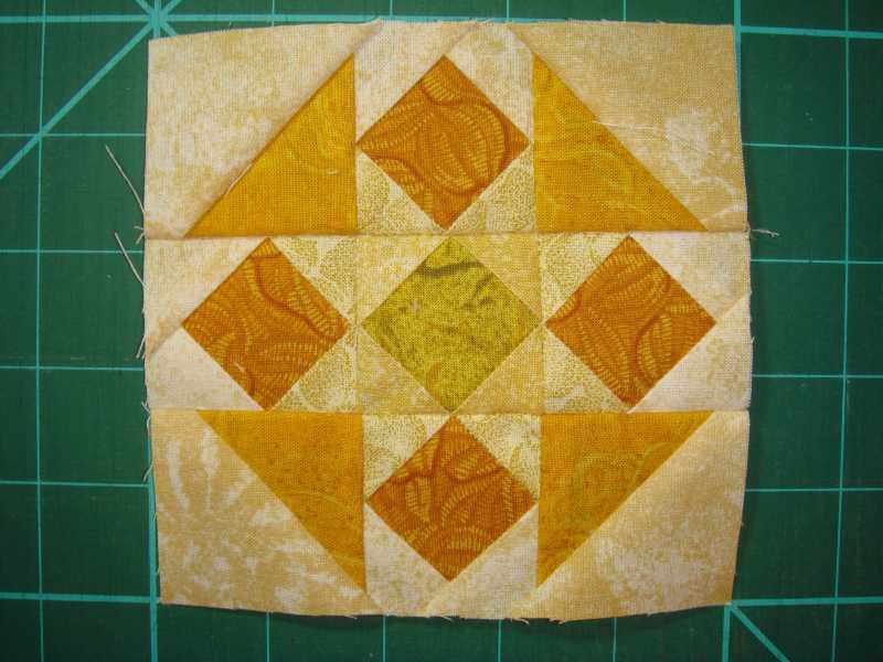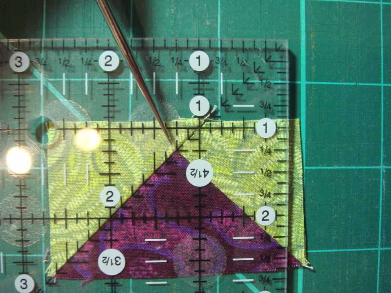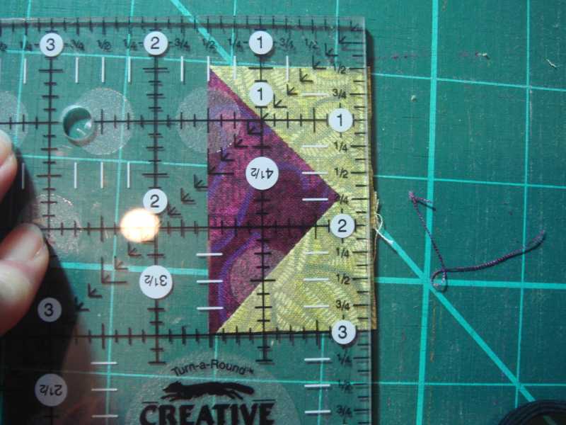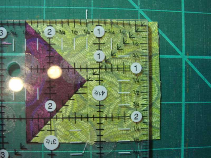 Here is how I did each "flying geese" block. It's oversized, and then cut to correct measurement for accuracy.