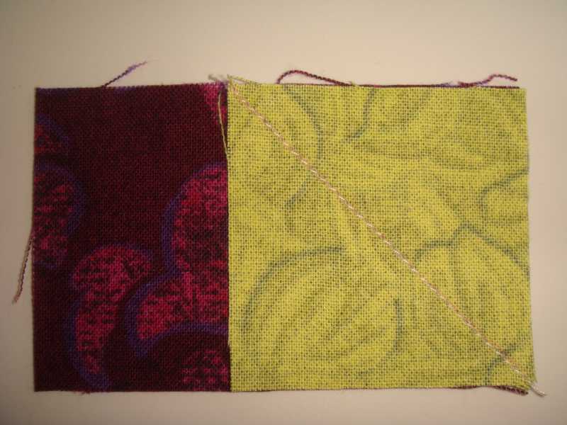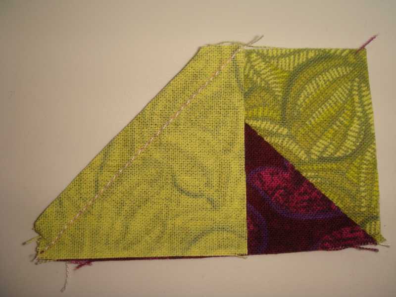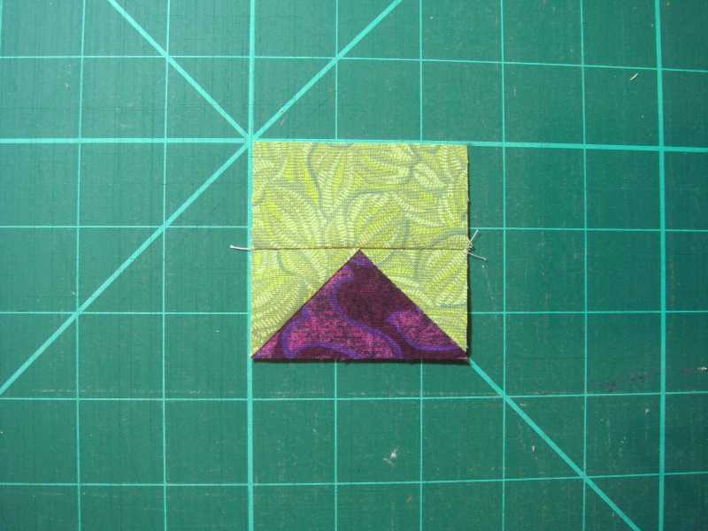 Press seam allowance towardsthe "sky" and place the 2nd square at the other end. Sew on the line.