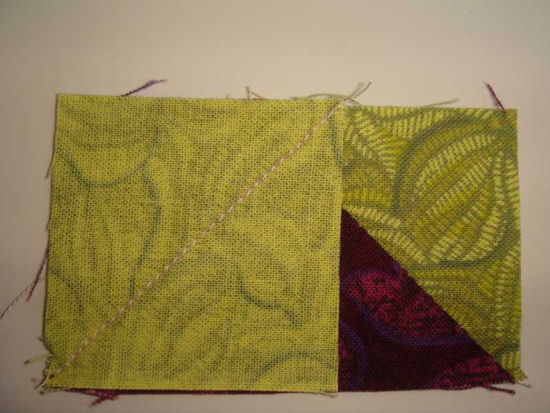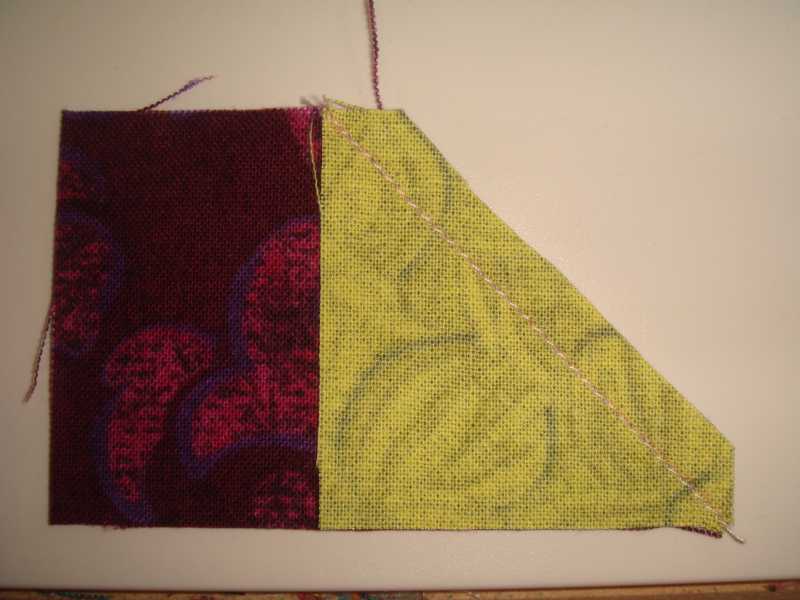 place a square at the end of the 2-7/8 rectangle. Sew on the line.