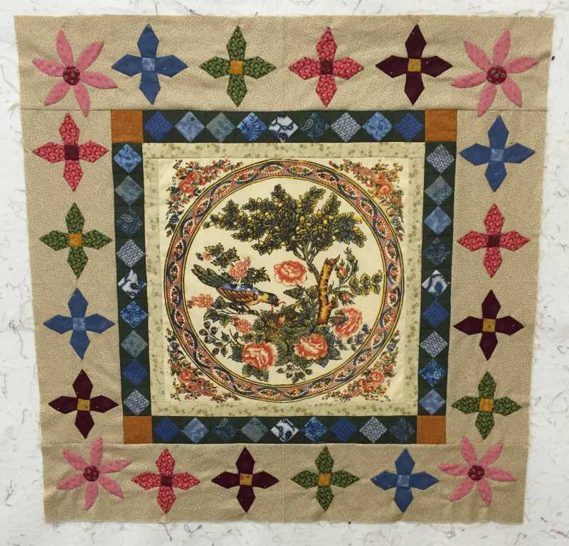 Join us on a TQS exclusive 12-month historic journey recreating the historic Rajah Quilt, sewn by women convicts on board the ship Rajah traveling from England on April 1841 to the penal colony of Van Diemen's Land-now known as Tasmania. The original quilt measured at approximately 128" x 128", but Lessa recreated it in quarter scale with fabrics from her stash. She used many different scraps, imagining that's what might have happened when the original quilt was being made. She followed the colors of the original quilt loosely, and tea dyed fabrics that didn't look old enough. You can obtain the same look with reproduction fabrics, or make a more contemporary-looking version like the one created for TQS.