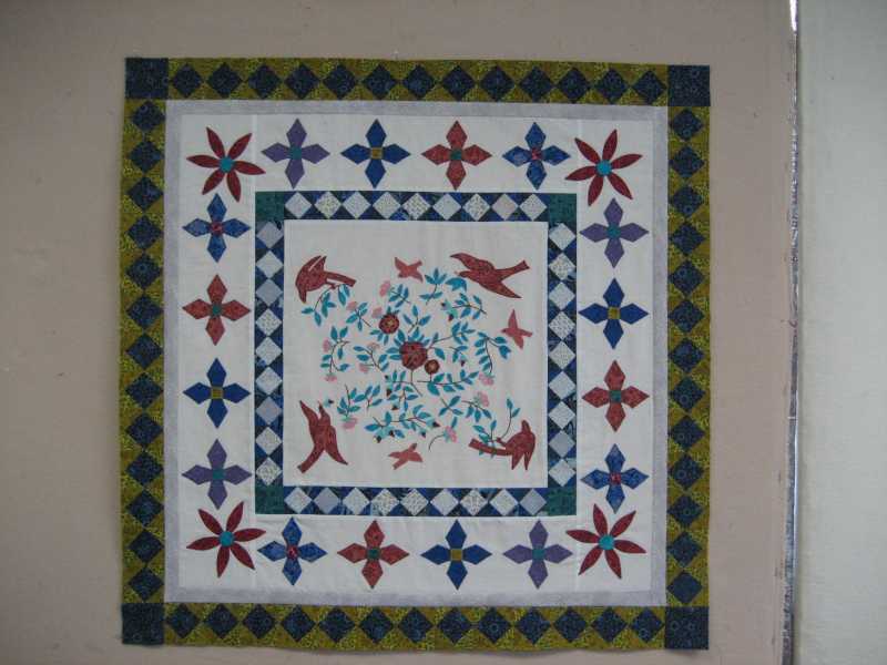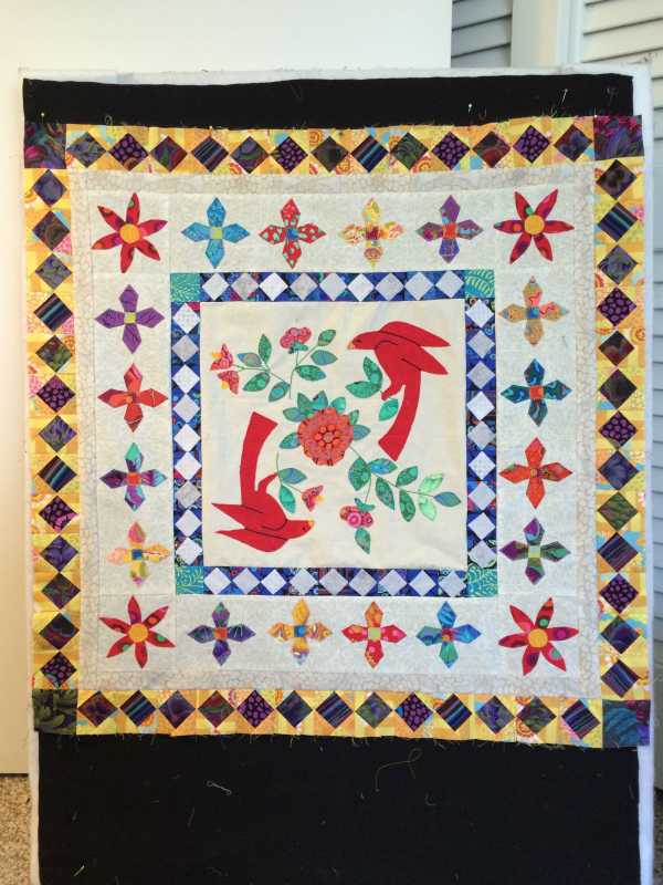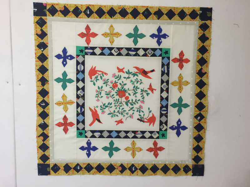 FYI- I just got back from MQX (machine quilters expo) where I bought a Clapper- solid wood block that you lay down on top of a seam you've just ironed (steamed or spritzed). Wood absorbs the moisture and weight presses down. Seams come out FLAT! With all the seams in the border for month 4 (and more coming) I'm definitely going to be using my clapper to get a flatter, more finished look.