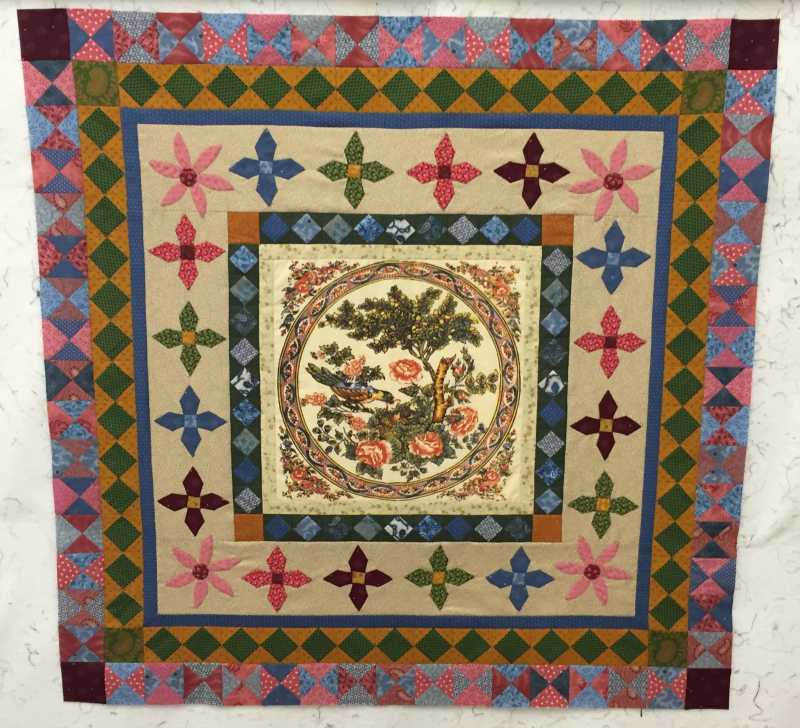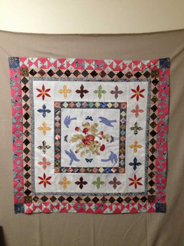 Join us on a TQS exclusive 12-month historic journey recreating the historic Rajah Quilt, sewn by women convicts on board the ship Rajah traveling from England on April 1841 to the penal colony of Van Diemen's Land-now known as Tasmania. The original quilt measured at approximately 128" x 128", but Lessa recreated it in quarter scale with fabrics from her stash. She used many different scraps, imagining that's what might have happened when the original quilt was being made. She followed the colors of the original quilt loosely, and tea dyed fabrics that didn't look old enough. You can obtain the same look with reproduction fabrics, or make a more contemporary-looking version like the one created for TQS.