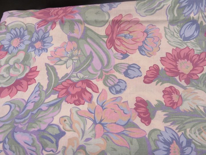 Your flower print is beautiful and you could pull the colors from that focus fabric to pick out your scrappy fabrics for the stars, flying geese, HSTs, etcetera. I would consider a Kona Snow (not a bright white) for your background. To me, the peach does not provide enough contrast to all that is going on in the borders. However, if you already have the peach in your stash and you have enough of it, you could wait until you get to the last outer border where, in the TQS version of it, there is the same fabric as the focus fabric in the setting triangles of the medallion and see whether the peach or the focus fabric looks best in the outer border.
