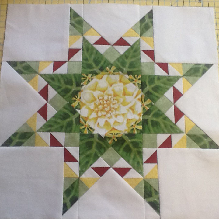 I finished the block. Here is the sample using the template as a guide for the 1/4" seam described above.