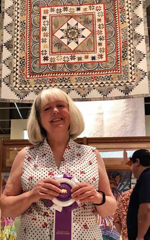 My "Little Birds Medallion" won Best of Division: Pieced Quilts at the California State Fair. The CA State Fair only displays winning items and most of the larger quilts are hung from the ceiling....way, way up...even the coveted Golden Bear (Best of Show) quilt was so high up that I could not see the fine work. Other than that, I am so thrilled!