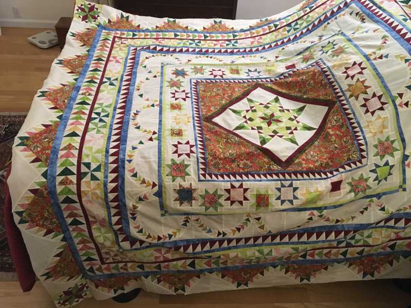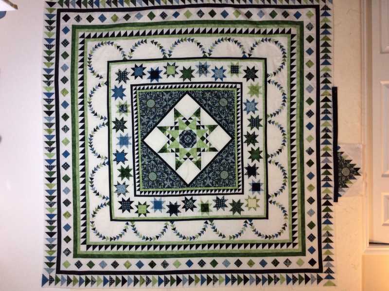 Yours looks wonderful. It is called String of Pearls. I hAve the delectable mountain blocks done and corrnor stars, just waiting for the floater info. Can't wait for the finish!