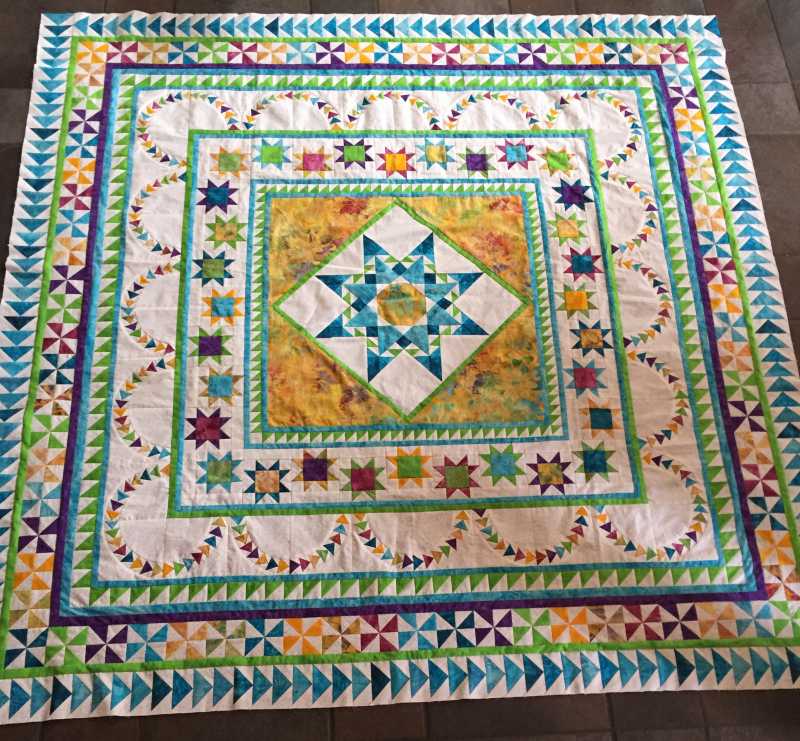 Join us on a new 12-month journey as we bring you bring you another spectacular quilt designed especially for TQS by Sue Garman. The 2017 TQS BOM Halo Medallion Quilt features a stunning variation of a feathered star surrounded by multiple scrappy borders. As icing on the cake she has included flying geese rings and delectable mountain blocks. Once again Sue has created a quilt for you that is sure to be a family heirloom in your home.