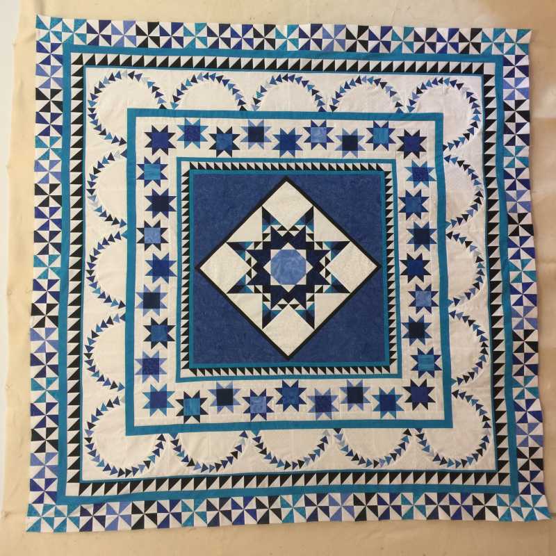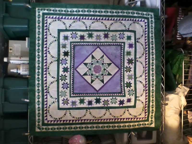 I just finished month 8, & I'm very pleased so far. I took an idea from the Sunday Sew & Sew group, & also used Seminole Patchwork. I'm thinking that I'm not going to do the last rounds, because this will hang in my office, & I don't want it to big. I'm making this at half size, (or sorta), & it's 32 inches square.