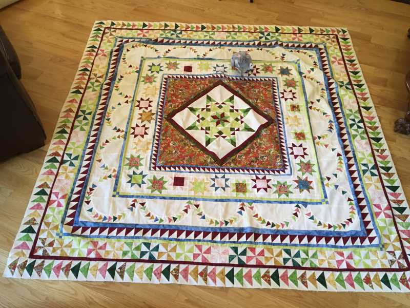 Join us on a new 12-month journey as we bring you bring you another spectacular quilt designed especially for TQS by Sue Garman. The 2017 TQS BOM Halo Medallion Quilt features a stunning variation of a feathered star surrounded by multiple scrappy borders. As icing on the cake she has included flying geese rings and delectable mountain blocks. Once again Sue has created a quilt for you that is sure to be a family heirloom in your home.