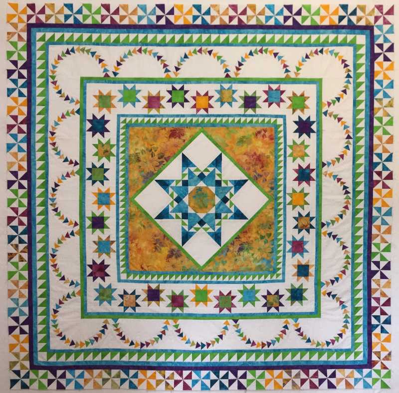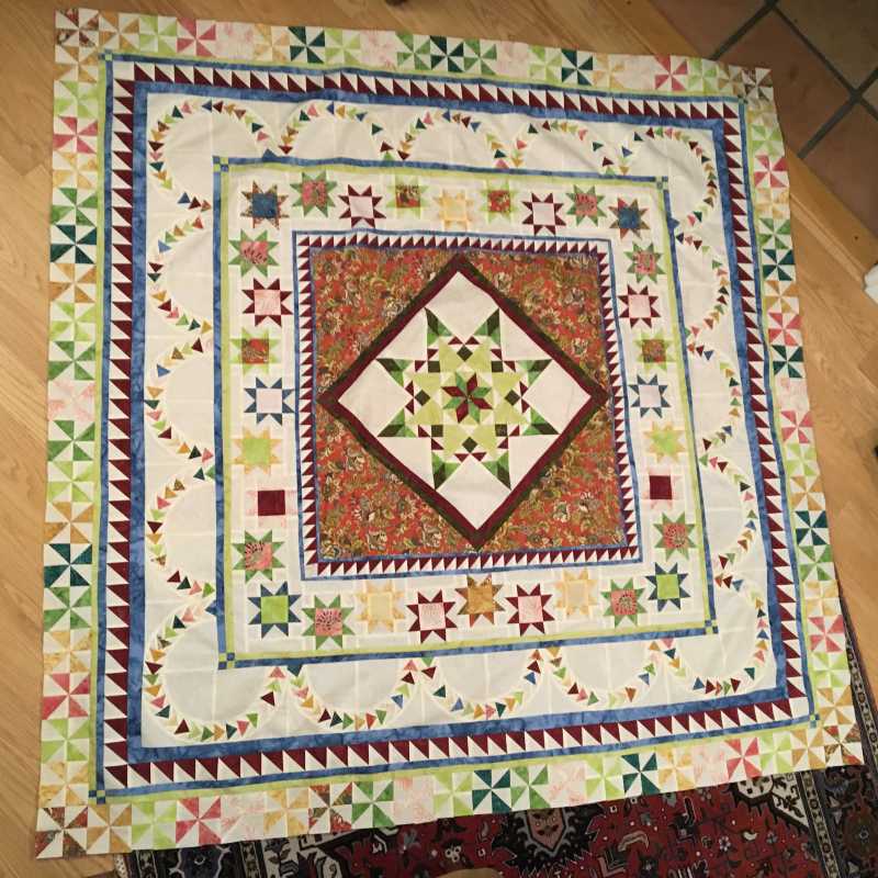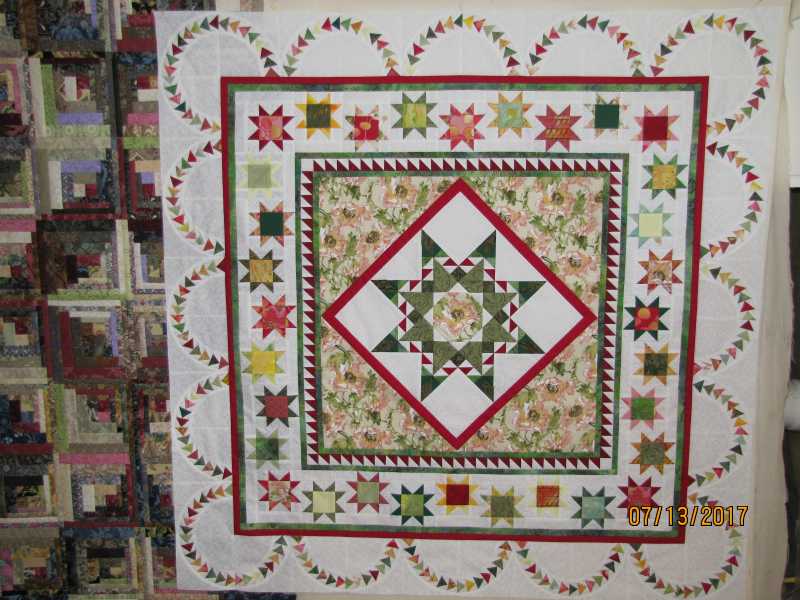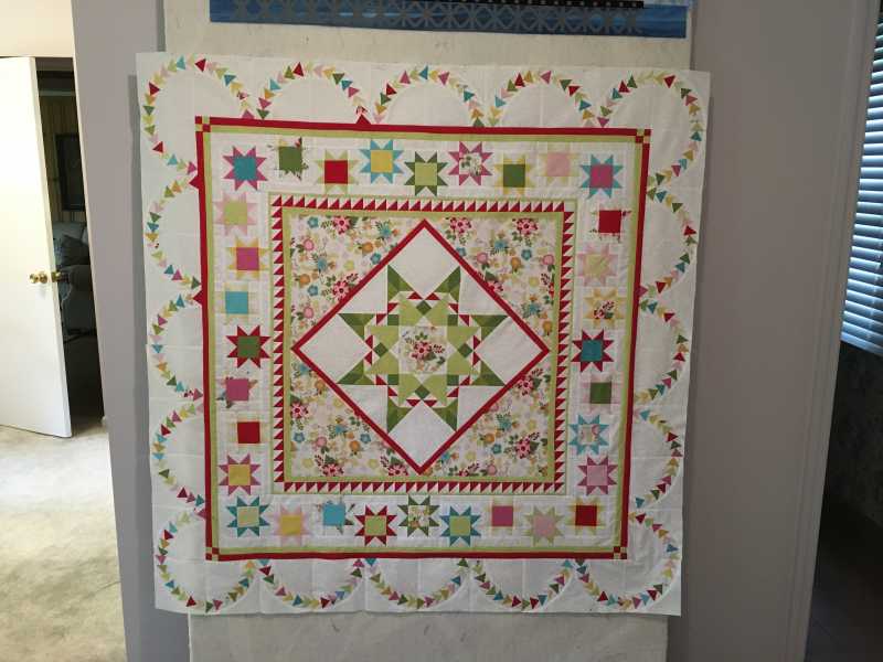 I am again looking for fabric. After starting the Flying Geese, I decided that I was not going to be happy with all that white background. Don't have enough of the teal I want, so its another waiting game. Meanwhile, I have done my Pinwheels, so I don't get so far behind again. I also need the 2 of the teals for my next half-square triangle border. Hopefully the fabric will be in next week.