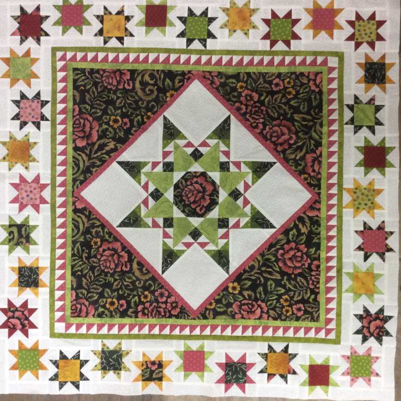 Join us on a new 12-month journey as we bring you bring you another spectacular quilt designed especially for TQS by Sue Garman. The 2017 TQS BOM Halo Medallion Quilt features a stunning variation of a feathered star surrounded by multiple scrappy borders. As icing on the cake she has included flying geese rings and delectable mountain blocks. Once again Sue has created a quilt for you that is sure to be a family heirloom in your home.