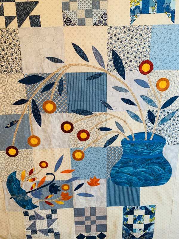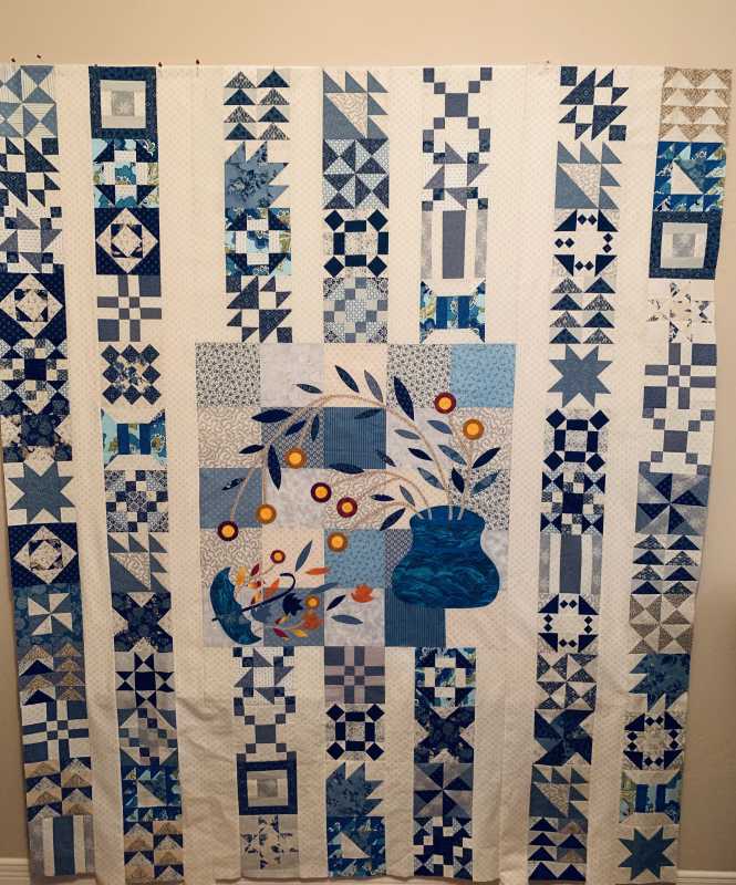 brentprim, I didn't purchase the kit, as I had quite a lot of blue, caramel and grey fabrics I wanted to use. I made my own templates, using Becky Goldsmith's method with self-laminating sheets over the leaf, twig, flower patterns provided in the instructions. I applied two layers of the self-laminating plastic sheet, as that provides more stability to the little patterns. Then cut out the patterns, of course!