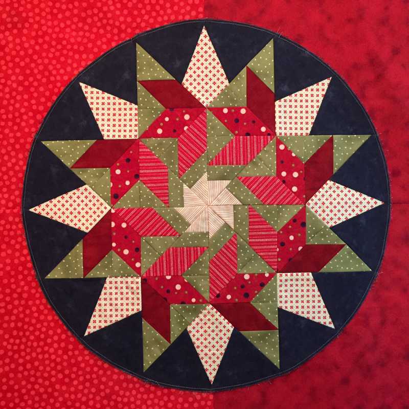 I finished block 2 over the weekend. I won't be putting them into the background until all of the blocks are made. I was going to do a red and white block, then I found the red focus fabric with white, green, and navy circles and I knew I would be making the quilt instead of the block. I'm almost positive I won't be doing the applique border though. My challenge this year is doing all of the blocks without paper. There will be templates though so I can't say totally without paper. I like to make templates on clear full sheet labels so I can cut oversized, check the accuracy, and trim as I go.