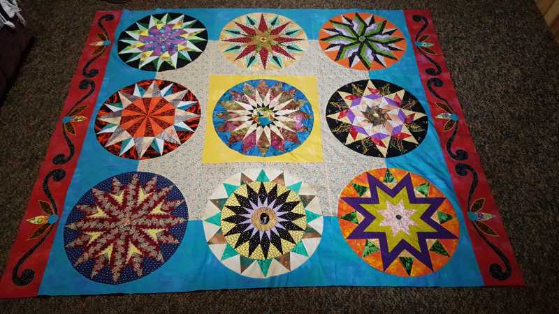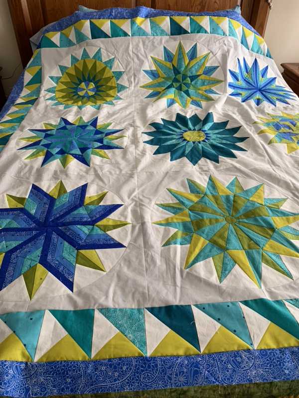 Pam, that pieced border looks great! I would add the extra blue border too.