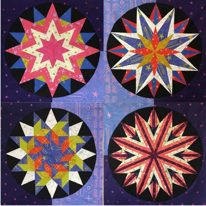 I’m having a blast with these quilt blocks. I’m using Alison Glass Observatory fabrics and have named my quilt Galactic. Here are my first four blocks: