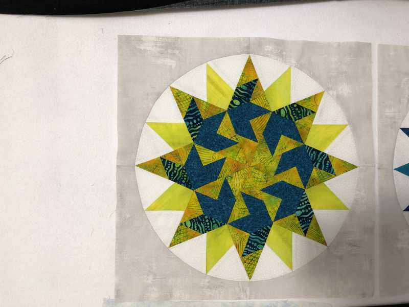 I’m still fussing over colours for March block and could have done better with February colours but having fun. Always wanted to do Mariners Compass and was intimidated by it. Thanks for making it approachable. I’m holding off on the corners to audition at the end. Thinking of shades of gold but will see how it unfolds.