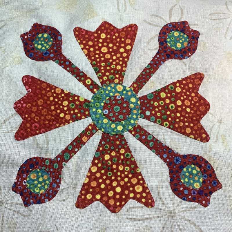 I did turn the heart for on-point placement, but my "petals" are spinning clockwise instead of counterclockwise. I planned to back baste that portion and didn't think about reversing it until I had already drawn the block. The clockwise rotation didn't bother me, so I proceeded.