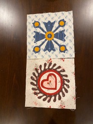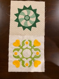 I've been keeping up with the applique blocks. Finished the 2 October blocks yesterday. I'm woefully behind on my double nine patch blocks. I keep getting pulled away to make more masks. I've done 22 double nine patch blocks.