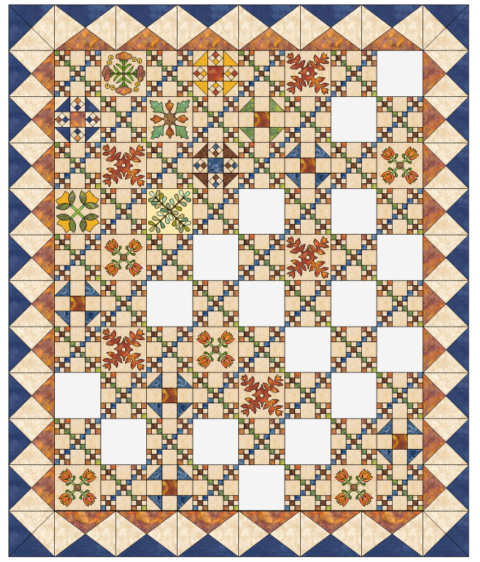 am out of time so they would be filled with applique blocks. This is just to start getting me thinking about it. If i do more I will post it for you. HelenW