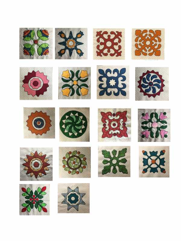 Finished my April applique blocks. I changed the centers of two of the blocks after getting the idea from the person