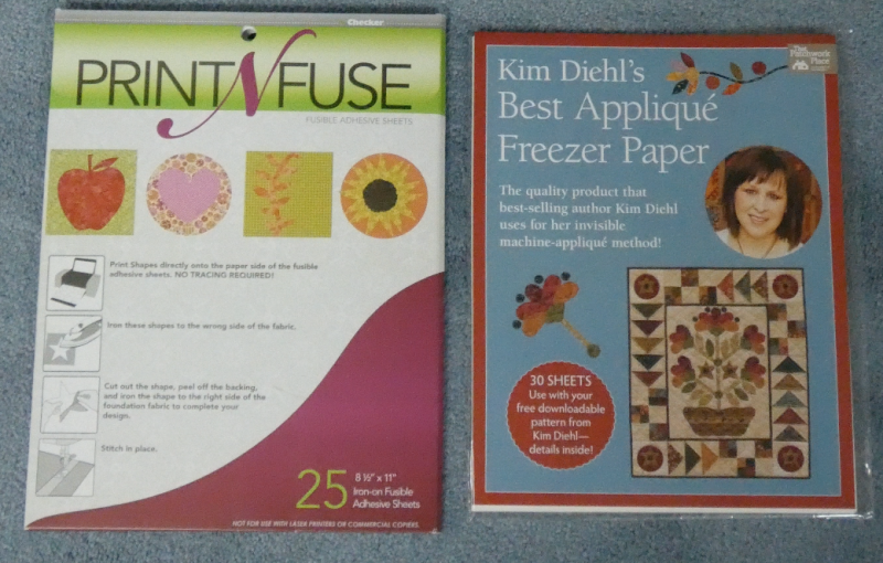 freezer paper. I make one copy on each product then cut the main applique with the print and fuse on the back side of the fabric and the smaller