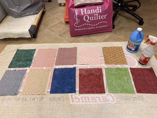 I starched 3-1/2 yards, chunky cut into 10”x 21” pieces.