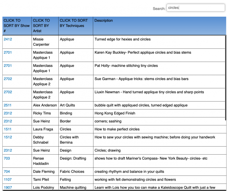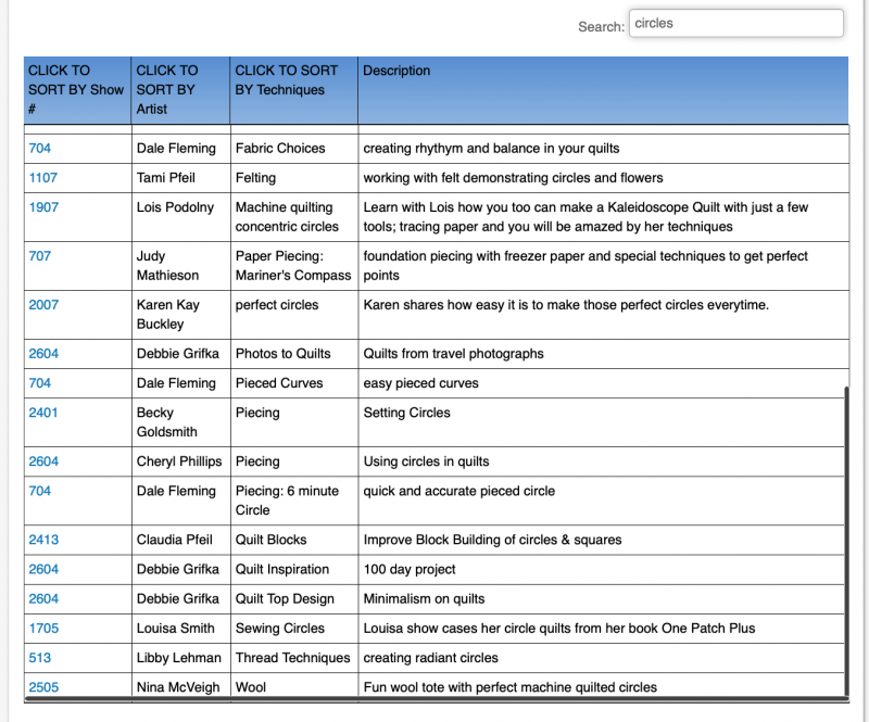 betroy, Not sure which show you are looking for, but there are a number that had circles in the topic. I took a screen shot so you can concentrate on just looking up those shows.