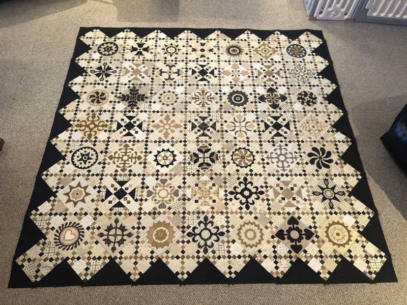 Good idea Helen. I have watched her class before and I"m watching again now. I'm planning to do the other setting but I still have to figure out how I want to do the borders as I just finished the nine patches finally! Probably just white borders so I can use the fabric I have...or maybe something more intricate like yours so it will be awhile before I get to the quilting but luckily you suggested quilting in sections! I have a Pfaff Quilt Expression that has a little more throat space so I think I will do the appliqué blocks how you suggested and stitch in the ditch the nine patches. Good luck on yours...it’s really pretty,!