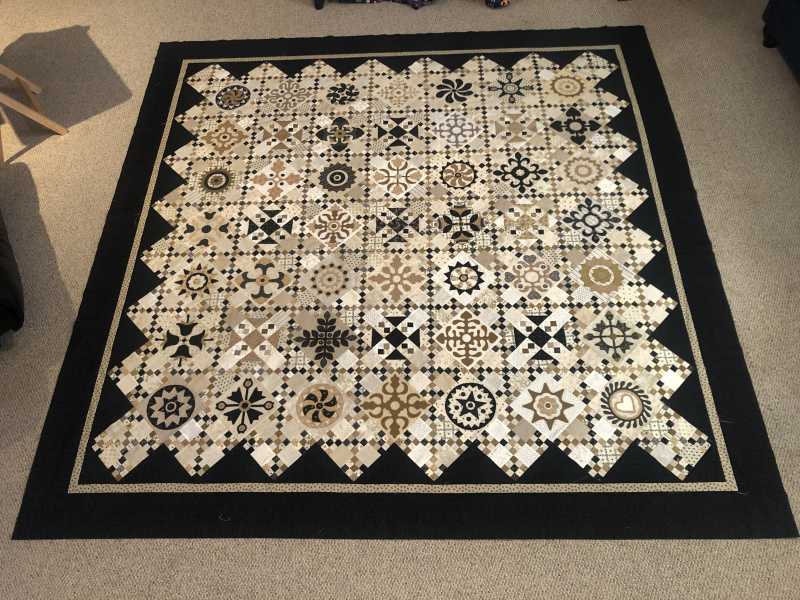 Wow!! Striking! Your black border really showcases the fabrics in the appliqué and other blocks.