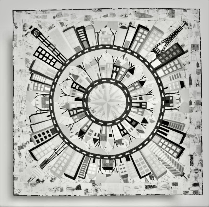 try a lot of different idea. In this one, I was thinking brown bias tape with the variety of green tree tops. Make my Mariner's Compass multi colored. This won't probably be the colors I go with. Maybe green grass instead of a road for the inner road. Thank you so much. I just wanted to let others know, that it is a great way to try out ideas and see what