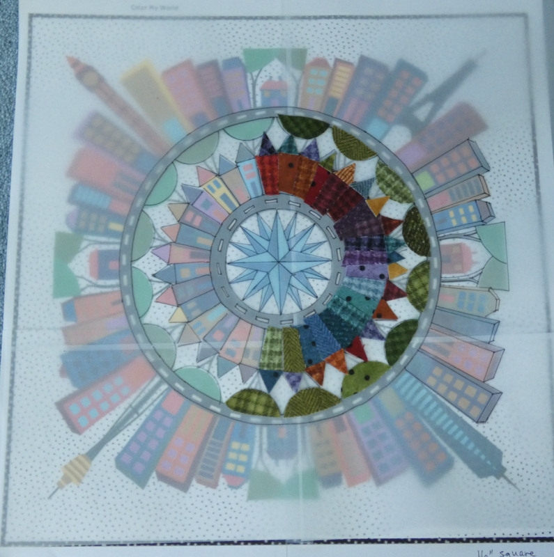 I am debating between making it look Folk Art Color My World or going brighter with tone on tone batiks. I am trying a coloring page to just get an idea of what it might look like.
