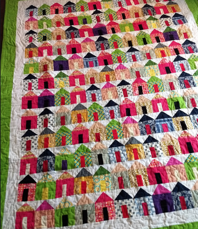 Now that I’ve seen how large the small houses are, and all the seams, I’m wondering if small prints would look better but solids for the windows and doors.