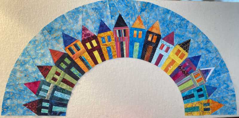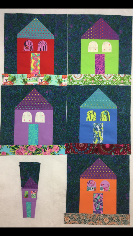 use a different piece when I get to the point of putting it together and fusing it down. I know I have the wrong number of houses, but I wanted a little room between the houses