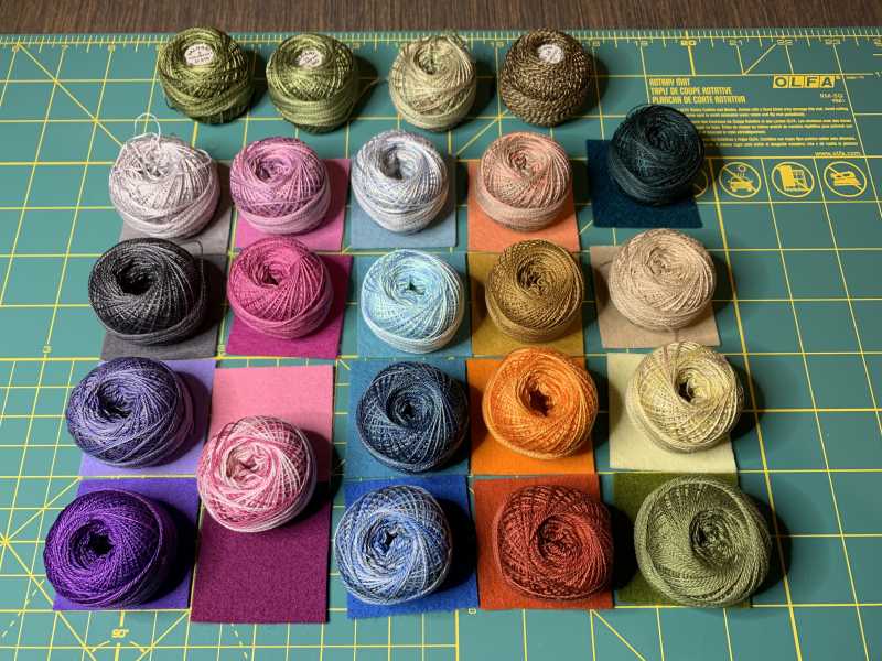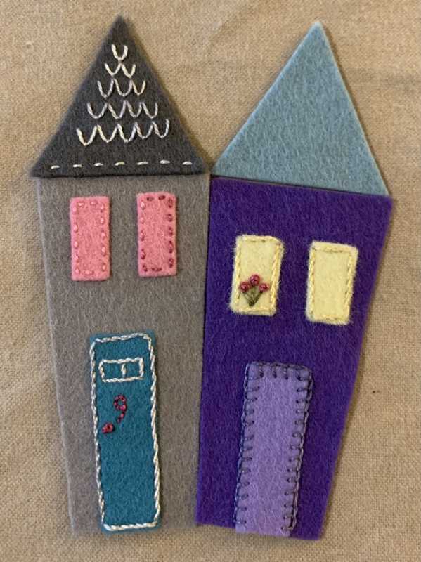 Finally able to start stitching my wool felt houses after picking up 2 dozen yummy colors of Valdani thread. Some solid colors and lots of variegated.
