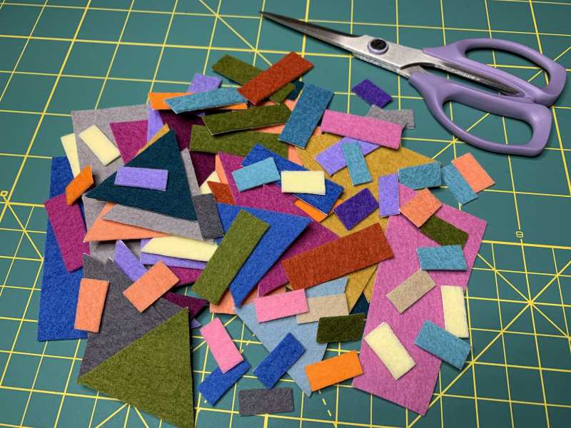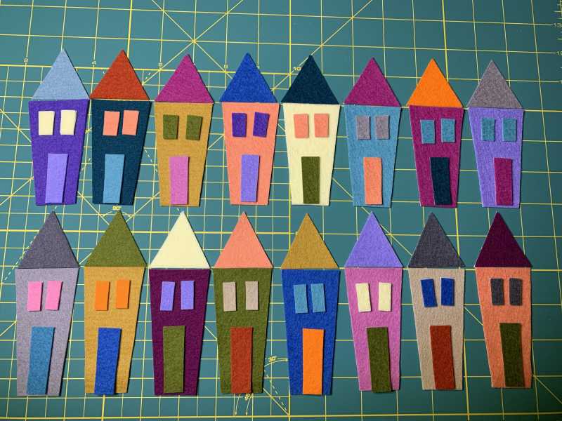 You don't even have to cut a house piece out to do this. I learned that I can test/practice my stitches on the wool felt, and then snip them out with embroidery stitches, and the felt looks as good as new afterwards, without cutting it.