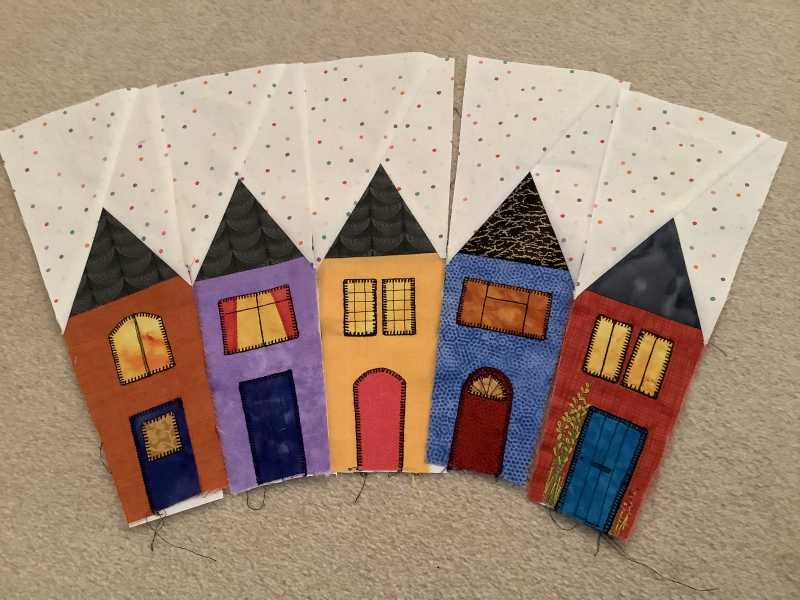 I assume everyone is using freezer paper. Tried it that way but prefer the traditional paper piecing. Guess I'm a dinosaur. The end result, however, is that the houses are beautiful and can't wait for next month.