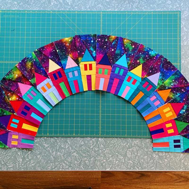 Here’s my houses for month 1, love how it’s turning out. I ended up doing normal fpp and my tip for keeping fabric in alignment while sewing is to use a little dab of fabric glue on the seams. So much quicker than trying to hold and see or use pins to avoid shifting.