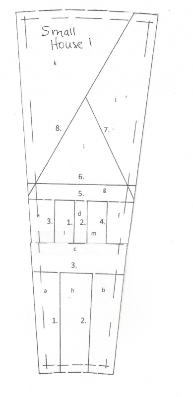 Look at the finished quilt, you will see how the small houses are situated. After month 3, two houses will be joined into a pair so the tree can be built on top of one pair. Do not sew them together until all 32 small houses are made and then only in pairs.