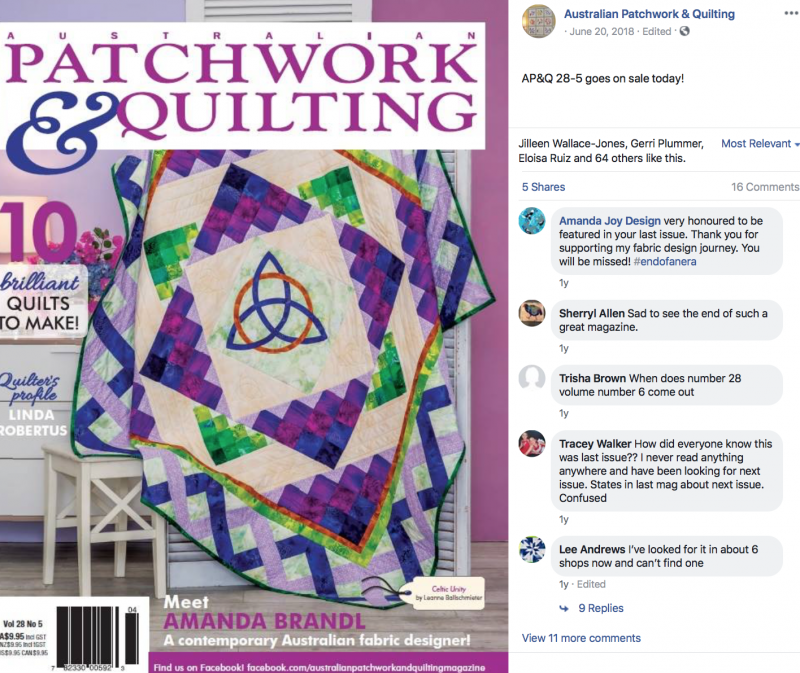 but somebody last week told a friend of mine that the magazine was still available... so, thank you for this visual . sure that this magazine will be missed; I'm happy to have been as suscriber a decade ago, I treasure what I have; have nice safe days (your quilt is gorgeous !)