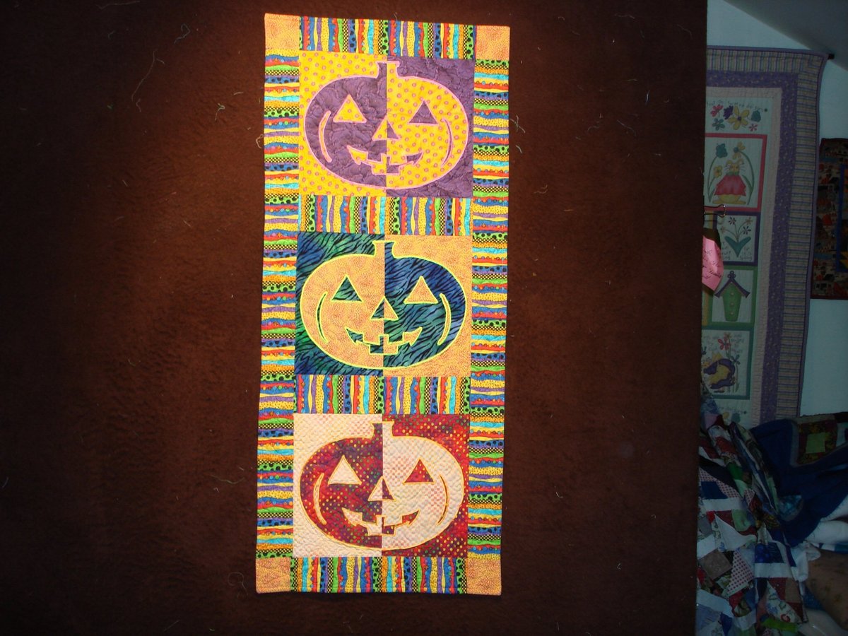 One day I want to have place mats in all the holiday themes, so we can swap those out as appropriate on our dining table. I have everyday ones finally (recycled denim with fabric strips down one side for color), but haven't done any holiday ones yet. Bed quilts took precedence, and then it will be on to other stuff next year.