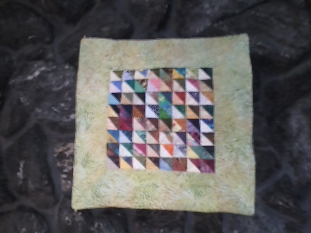 It’s me, Clara Lawrence, the Sorting Queen. Come join in and lets do some stitching together. (Hey, there's an idea: build your mini-quilts from left-over half-square triangles and strips!)