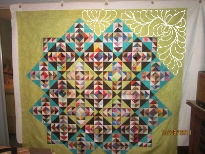 First, I want to really give a shout out and thank you to Keith Dommer. Keith took time out of his busy schedule to look at pictures of my quilt and give me suggestions for reigning in the corners that grew during my machine quilting of the center. This really is my first machine quilted piece and I've learned a great deal the hard way on this piece. Keith, if you get a chance to read this, THANK YOU for all of your suggestions. I followed your advice to the tee and was able to get it perfectly squared. My next quilt will go much better now that I know a little more. Although that could be dangerous, huh.