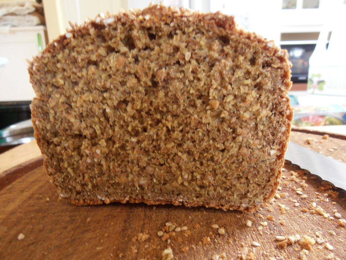 Line a 2lb loaf tin with baking parchment and fill with the mixture. Sprinkle the top with sesame seeds or oatmeal or your personal favourite. This is what it should look like before it goes into the oven. The one on the right is brown bread the one on the left is onion seed soda bread.