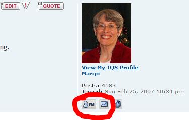 Elizabeth, that will work just fine to get a message to Rosemary. Two other things that work are to just click one of the icons under a members avatar(personal photo). You can either send a PM (personal message) or an e-mail by clicking on the appropriate icon. Sorry, I'm not sure what the difference is, but I'm thinking that either way the message will get to the member.