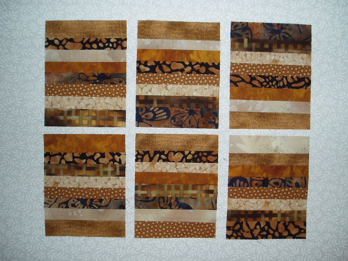 Just for the record, my precision is not up to the standards of what Annis has done! My units measure a perfect 3 1/2" x 4 1/2" but if one strip sewed up less than 1/2" for some reason, then I would compensate with the next strip or two. But, in the end they measure 3 1/2" x 4 1/2." My husband accuses me of making a career out of everything I do, so I am really focusing on getting things DONE this year and not spending longer than necessary on any one item. If I had done each individual strip as accurately as Annis has, I would not get another thing done, and could even miss the dealine!