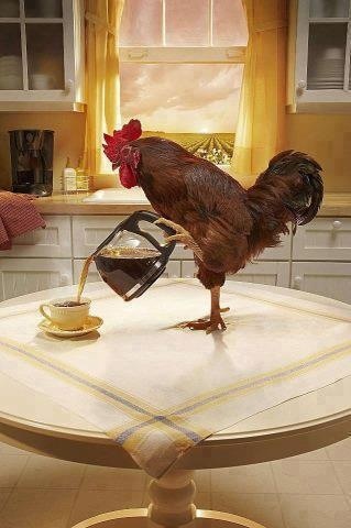 Limbania, Might as well fight this thing from all sides. Good for you for checking out all perspectives. As for the chicken you found on fb, I have a feeling it's not a girl. Looks like a rooster to me. If you ask me, if he's going to wake the world at the crack of dawn with all his crowing he might better well have the coffee on too. Great picture!